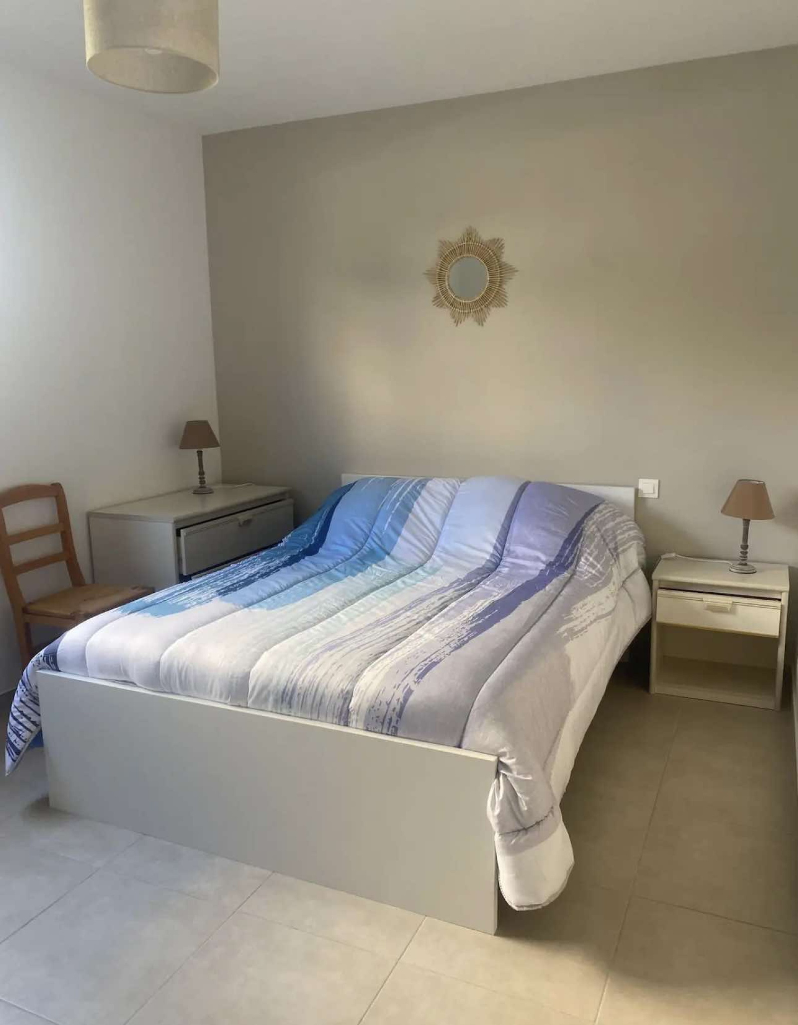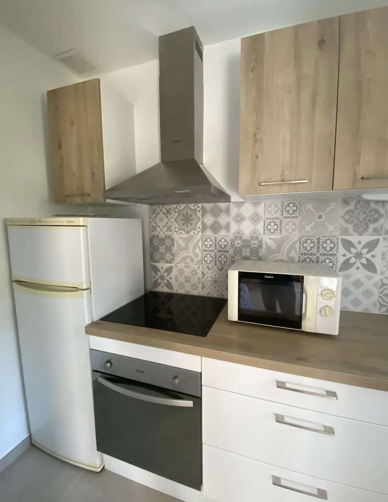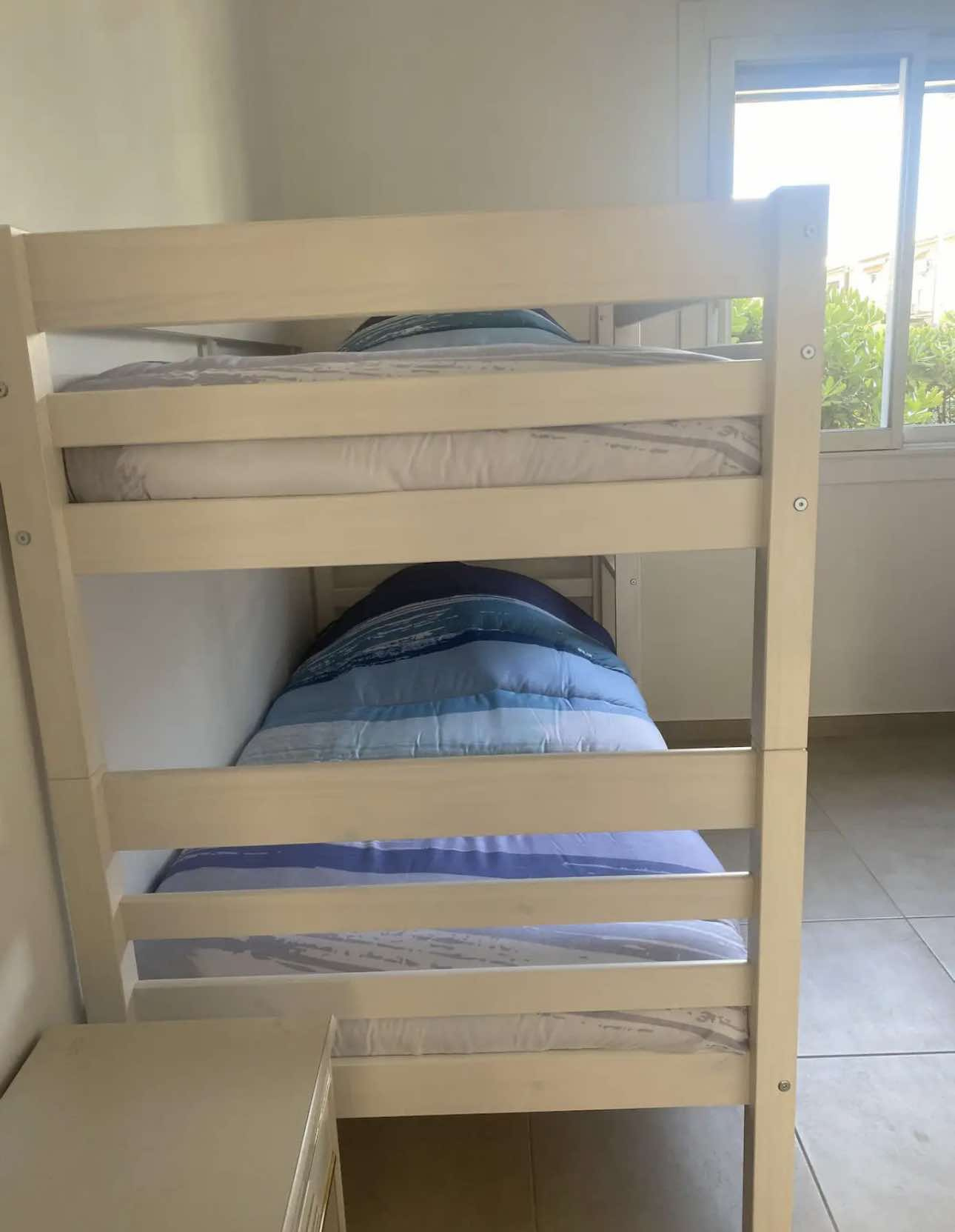 Superbe appartementclimatisé 5 places entièrement rénové en rez de jardin à 100m de la plage avec place de parking , se composant d'une chambre avec un lit en 140 et 2 lits superposés en 90 et d'un canapé lit dans le salon, d'une salle d'eau, d'une pièce à vivre et d'une cuisine équipée d'un lave vaisselle .