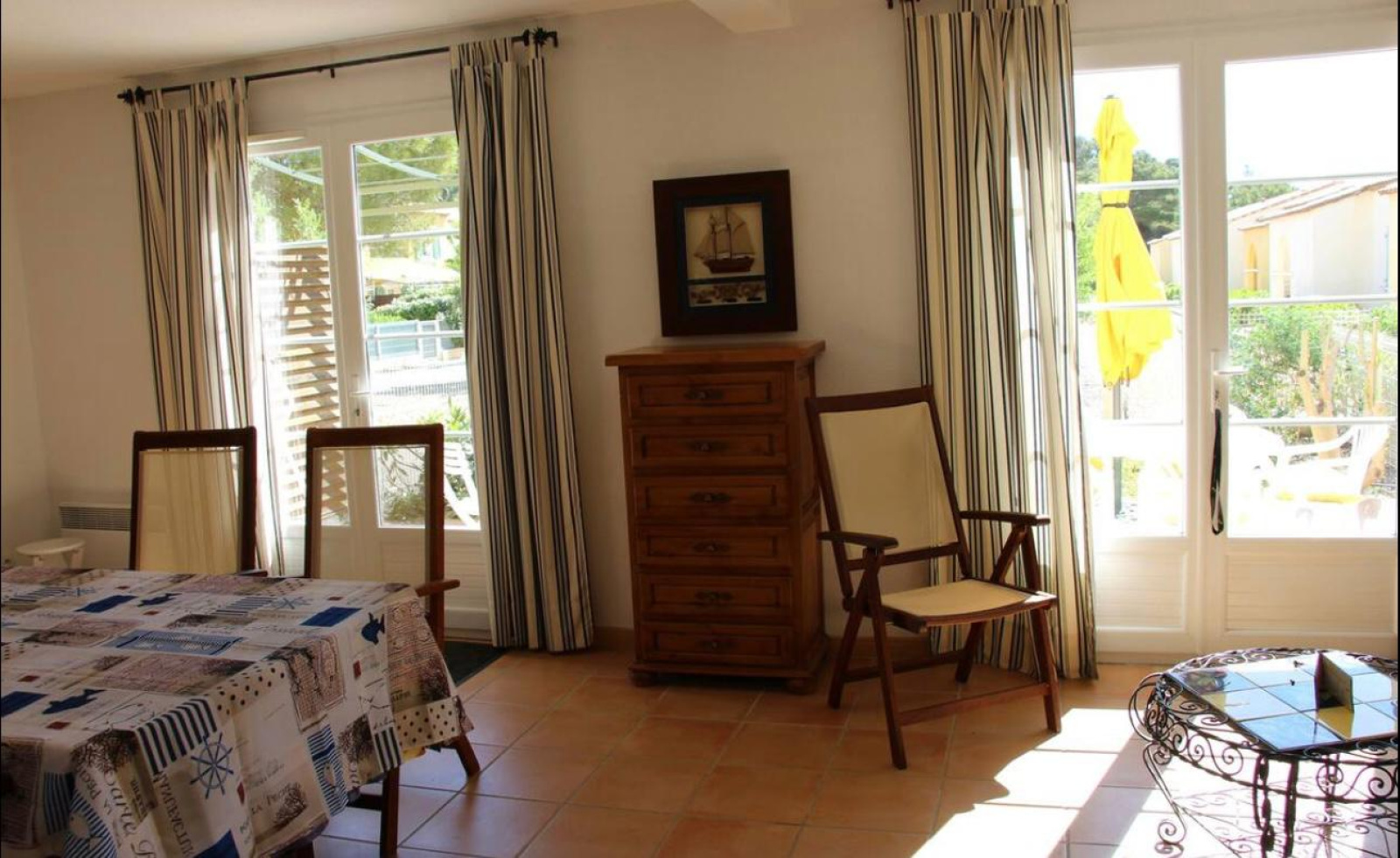 Au rez de chaussée grande pièce à vivre (salon, salle à manger, cuisine avec lave vaisselle) 1 garage avec lave linge, 1 wc ainsi qu'une belle terrasse et un jardin . A l'étage 3 chambres vous accueillent dont 1 avec 1 lit en 140, 1 avec 1 canapé lit en 160 très confortable et 1 avec 2 lits en 90 . Une terrasse vous permet d'admirer la vue sur la Clape