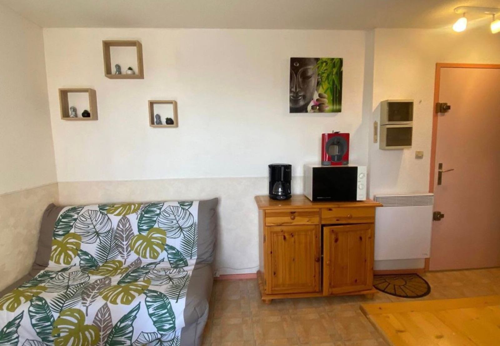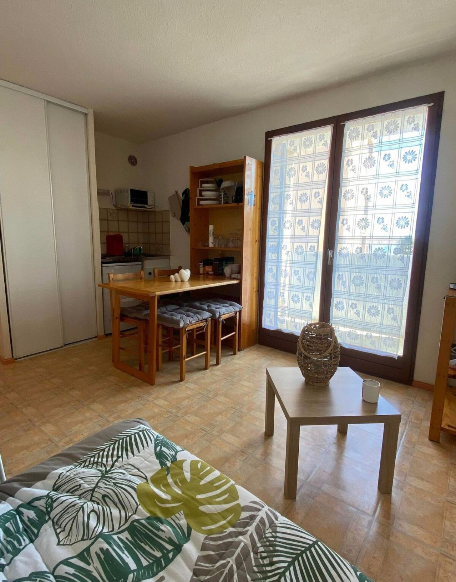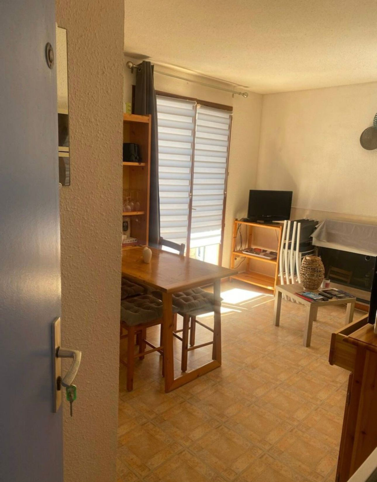 A St Pierre la mer agréable T2 au 1er étage d'une résidence comprenant un passage piéton pour accéder à la plage . Le parking privé vous attend en bas de l'immeuble . L'appartement se compose d'une pièce à vivre avec canapé lit et coin cuisine, d'une chambre avec 2 lit en 90, d'une salle d'eau et d'une terrasse bien agréable .
