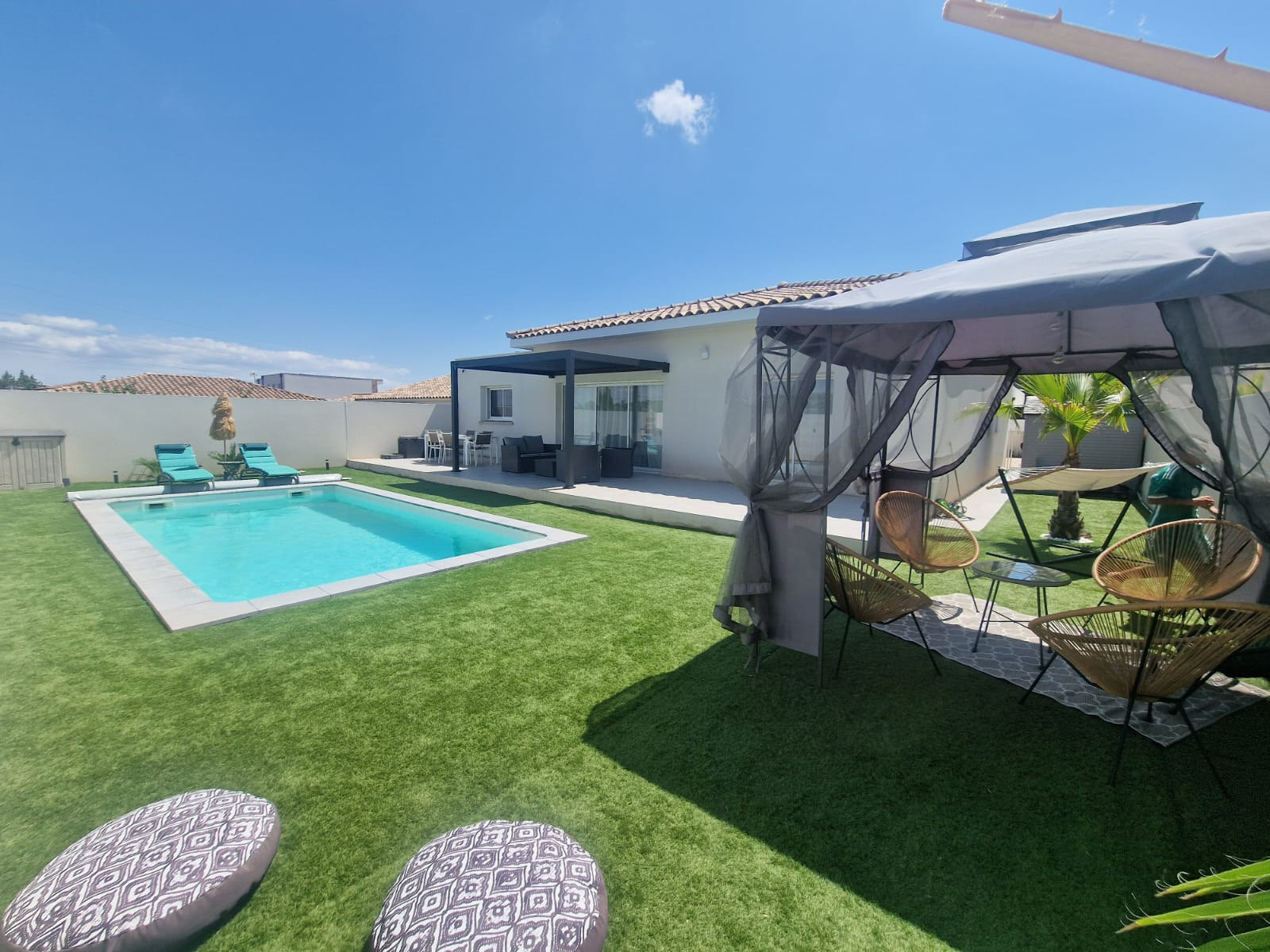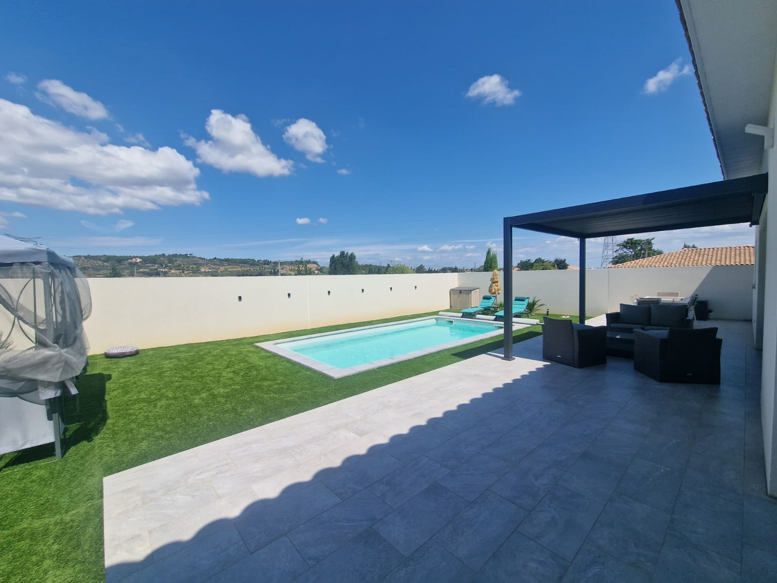 L'extérieur est tout aussi séduisant avec un terrain clos de 547 m², une belle terrasse et une piscine 3,5 × 7,5 m idéale pour vos journées d’été.