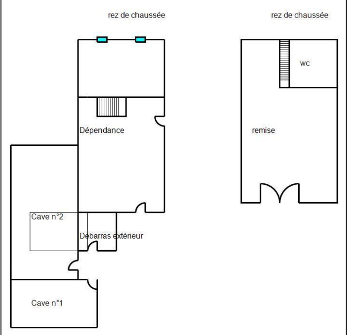 L’ensemble s’accompagne d’une cour, d’un jardin d’environ 90 m² et de plusieurs dépendances, parmi lesquelles des caves, une remise, un grenier et un cabanon.